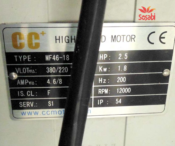 Oprema: Dva motora, svaki snaga: 0,75 KW, (1 HP), brzina 12000 ob /min.
