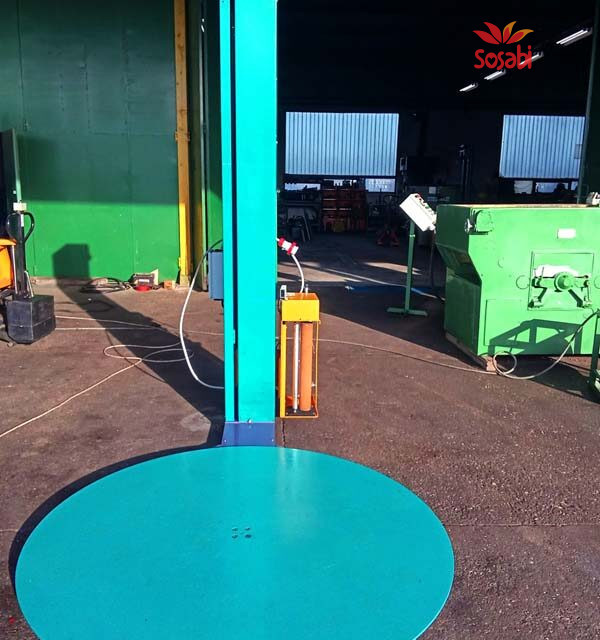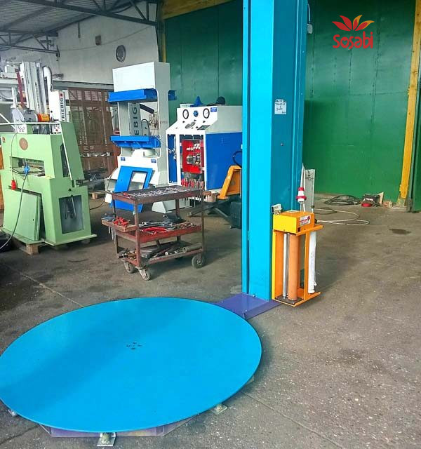 Poluautomatska mašina za rotaciono pakovanje paleta, rastegljivom folijom.