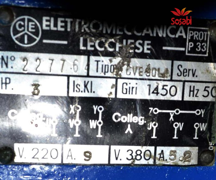 Snaga motora : 3 KS, brzina 1450 ob / min.